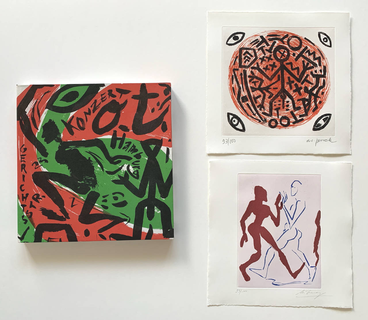 box with colored signed etchings by A.R. Penck and by Helge Leiberg