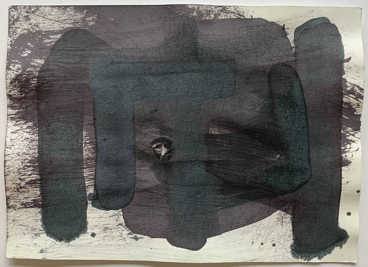 Bildhauerzeichnung mit Pinsel und Besen, Tusche auf Papier, bearbeitet mit Schmiedehammer
