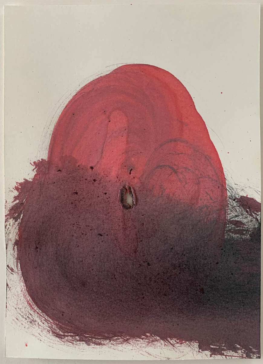 Bildhauerzeichnung mit Pinsel und Besen, Tusche auf Papier, bearbeitet mit Schmiedehammer